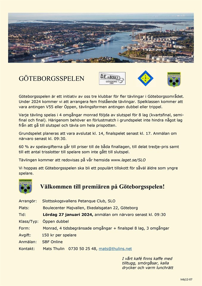 Inbjudan GÖTEBORGSSPELEN. Lördag 27 januari 2024 Boulesektionen 9 dec 2023 0kommentarer