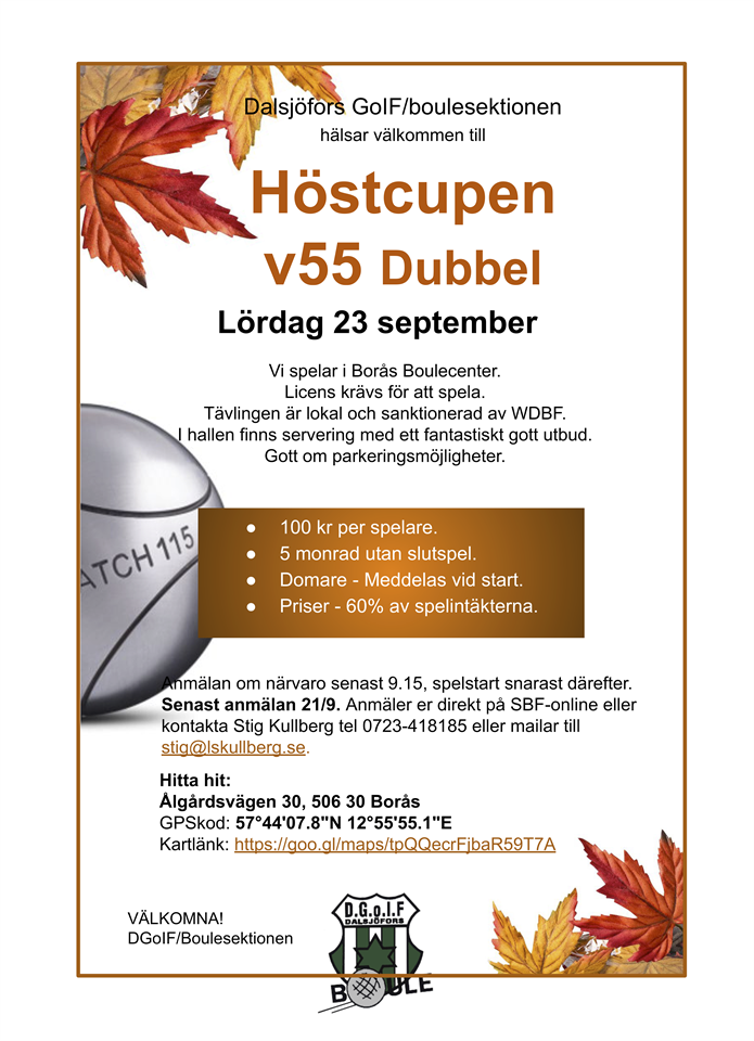 • Inbjudan Höstcupen v55 Dubbel 23 september