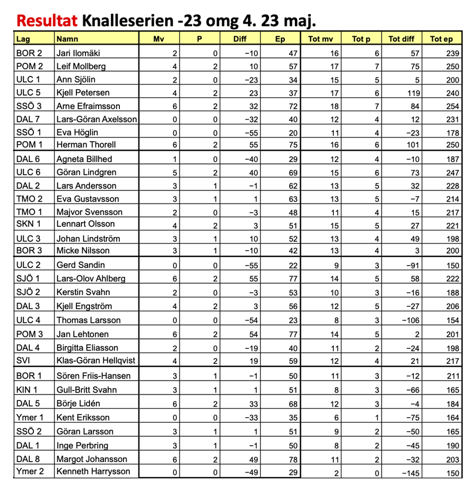 • Spelresultat Knalleserien spelomgång 4 23/5